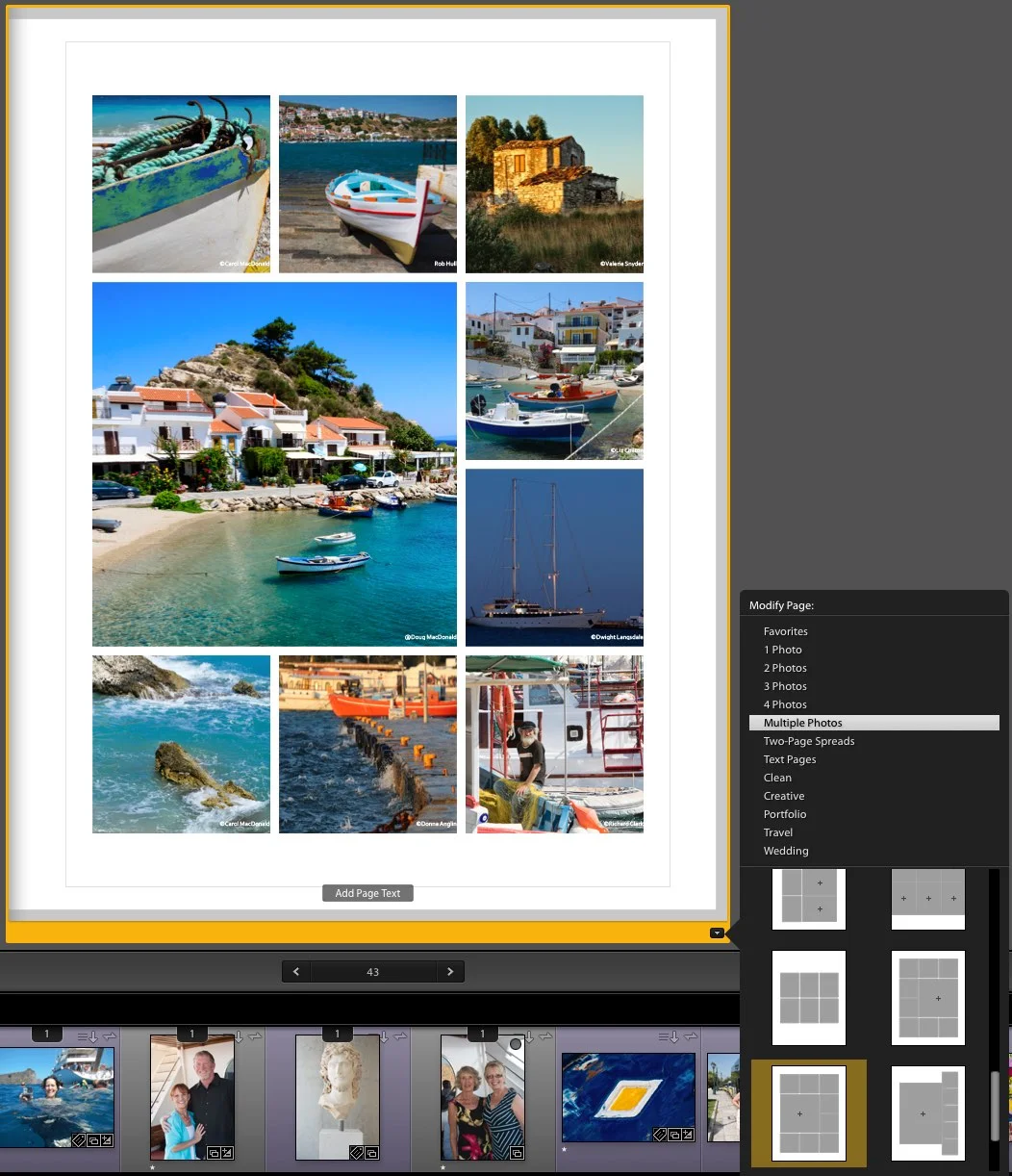 What was very nice was the fact that even after I laid out the book, I could edit an image and those edits would automatically show up in the book. Even metadata changes. I used the copyright field to credit each of the photos. Some of the photos ended up with no name or I misspelled the name, a quick metadata update fixed the problem. Had I been doing the book online, I’d have to export the newly edited image, upload it to the server and switch it out in the layout.