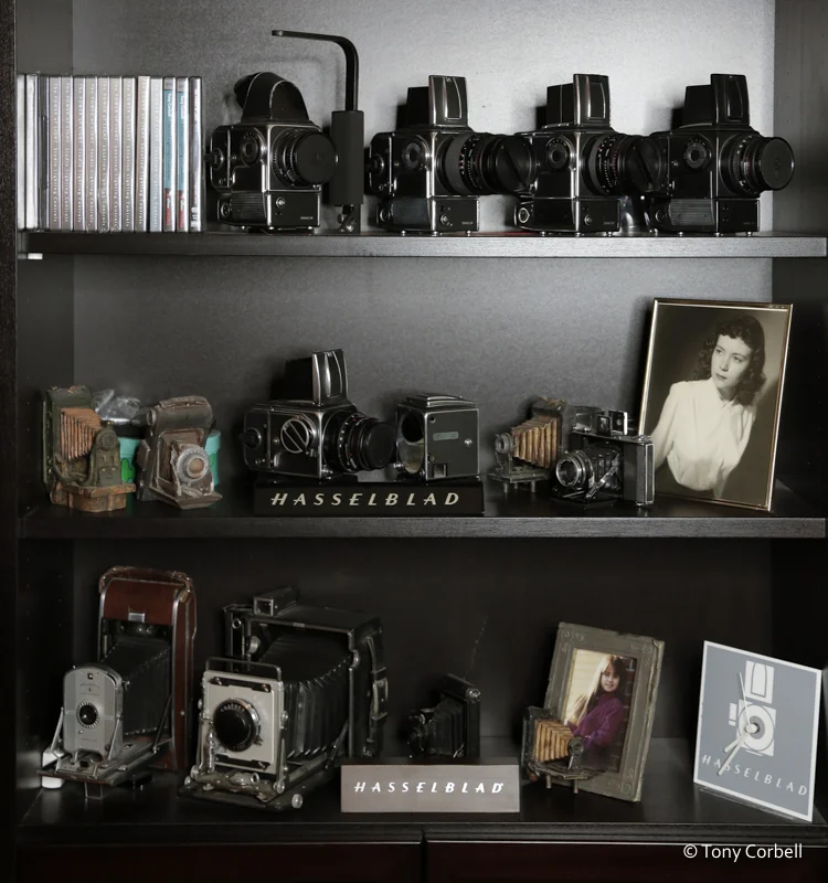 Film was great. In fact, I loved film. I loved my family of Hasselblad cameras (see family portrait below) and I loved the smell of my darkroom. I loved my big ol' Polaroid camera and the special sound made by my Speed Graphic when exposing a 4 X 5 sheet.