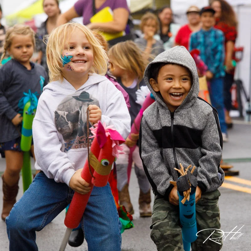 Kids have a stick horse race in Honoka'a during Western Week, a celebration of the towns paniolo (cowboy) heritage.